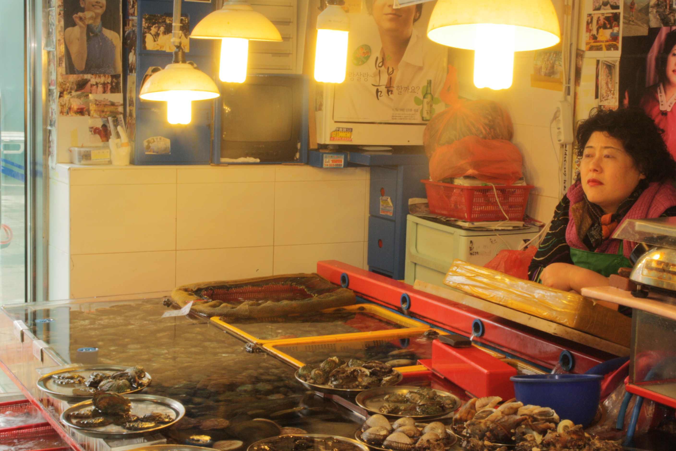 Among my favorite outdoor markets in Korea is the Jagalchi fish market in Busan. Visitors can wander through over ten blocks of undersea curiosities and enter a two story indoor group of stalls for even more seafood delights. On the second floor of this seafood market are restaurants who encourage customers to purchase fresh fish downstairs and then bring it on up to be cooked and served with a variety of side dishes.