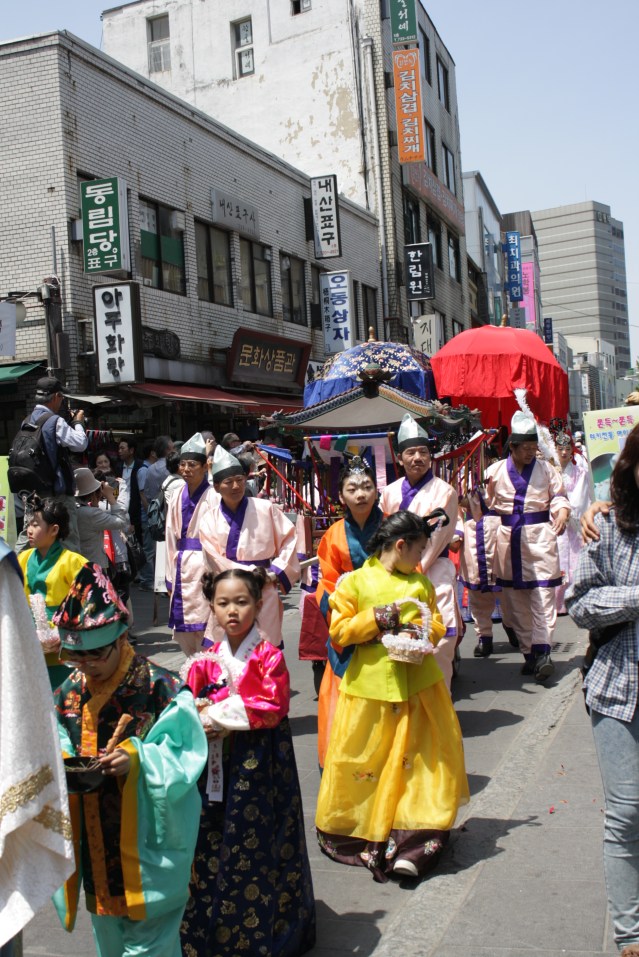 On Sunday we made our way through Insadong’s busy market street, and to the lantern making festival where not only did we get to participate in the traditional lotus lantern making, but we were in the company of practicing monks. One young man was at the festival with his parents who were visiting him for the first time since he had left his home in Saint Louis to study Buddhism and train to become a monk in Korea. He was gracious enough to share with us a bit about his experience living in a Korean temple, and practicing Buddhism as a foreigner saying that he did between 100-200 bows a day!