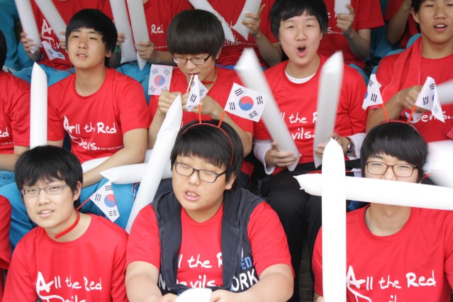 With kick off in less than a week Korea has made sure to clothe every citizen working in hospitality from hotel staff to grocery clerks in red jerseys in support of the South Korean team affectionately called “The Reds” or “The Red Devils.” Korea’s beer “Hite” has changed its label from a generic looking orange and blue motif to a series of football comic strips. Schools have held world cup themed sports days where classes compete in massive football games emulating their favorite players. Little is known about pre-game build up coming from the North Korean fans but NPR recently reported that key Northern player Jong Tae-Se has vowed to score a goal in every one of the team’s scheduled matches. Not an easy task given the tough draw the North Koreans have been stuck with.Jong Tae Se