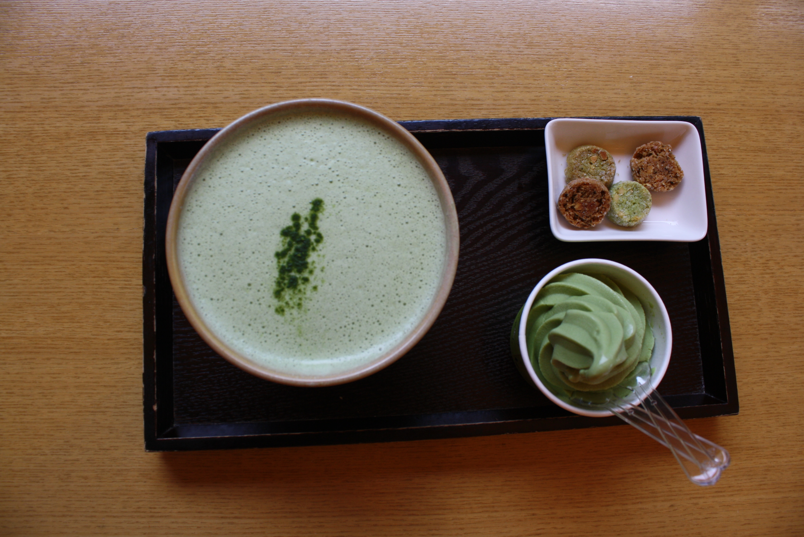 On our first day in Seogwipo we bee-lined it to a scooter shop to pick up some wheels for the day. Jeju has ample bus transportation but with so many sights to see and a lot of ground to cover a car, scooter or at least a bicycle are good options unless your itinerary is relaxing on the beach with a good book…not a bad idea either! Neither Matt or I have an international driver’s license, but this didn’t prove to be a problem when renting a scooter on Jeju, although chances are you will need one for a car rental. We payed 30,000won for a full 24hrs with our cute retro bike and off we went to the green tea museum. The museum itself is small, boasting a hallway of tea sets from around the globe and an upscale gift shop but what really drew me was the architecture of the building and its lush, green surroundings. The building is a mix of floor to ceiling glass panels, un-finished wood and cement, translucent enough to blend into the landscape making it look like a modern hobbit hut. The grounds are absolutely breathtaking with green tea plants as far as the eye can see. The museum cafe also has over-priced, but un-avoidably green snacks that were too tempting to pass up.