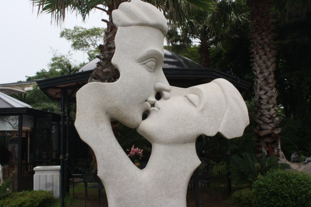 Our next stop was the chocolate museum, mostly in hopes of free samples. I’m not sure if it was the sign that reads “Christmas every day” or the lack of samples that turned me off, but the museum was a bit of a disappointment, miles from anything and in serious need of some updates, and an overhaul of all Christmas related decor. Admission at only 2,000won including a free cup of coffee made it at least a comical stop on our way to the Sex and Health museum. In our defense, Matt is a certified P.E and health teacher and I, aside from having a perverted sense of humor, was greatly interested in the rumored “Sex sculpture garden.” The museum’s parking lot is larger than the building itself and was packed with cars.*Remember Jeju IS the number one honeymoon destination for Korean newlyweds. Inside is everything you would expect from the museum’s title: a rotating stage of manicans in various sexual positions, statistics of everything from average number of partners, to average time spent on foreplay, and a complete sensory playground with various scents, textures and sounds to delight visitors. I was making a bee-line for the exit after discovering that there were no English options on any wall captions and that someone had accidentally left the Pamela Anderson look alike doll “on” who’s moans could be heard throughout the building. I gave the museum another chance when I came across the Chinese scroll and tapestry room depicting courting traditions of early Chinese emperors. These works of art held my attention long enough for Matt to find me and us to call our museum tour a success.