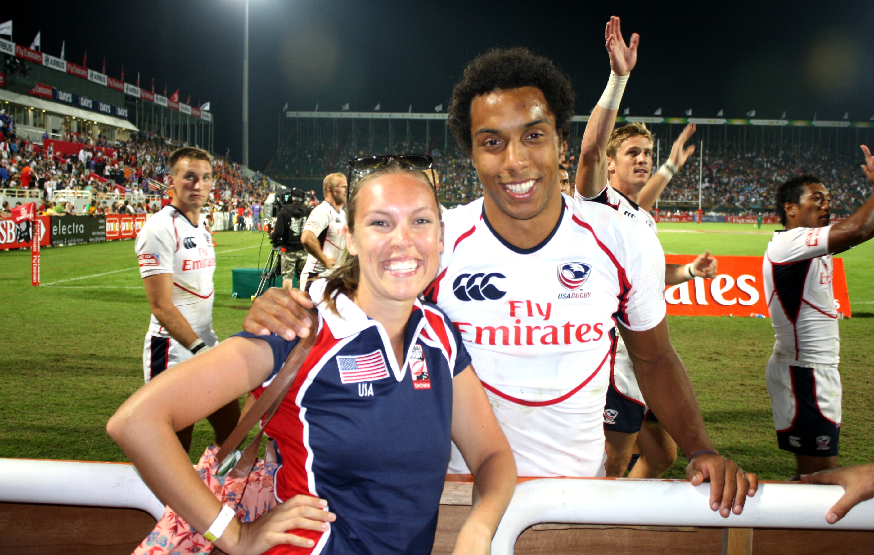 My relationship with my fiancé closely mirrors my relationship with rugby. I began dating Matt seven years ago when I moved in next door to the infamous “rugby house” located strategically between campus, and the bars. If ever a real life “Animal House” were to be, this would have been it. I spent afternoons wrapped up in the antics of the rugby team, weekends supporting our boys in tournaments, and nearly every day with Matt. I quickly came to know this sport as less of a game and more of a culture. A culture that is sometimes difficult to date. Throughout the past seven years I have had my struggles with rugby. I’ve bailed people out of jail in rugby related incidents, nursed concussions, and been thrown out of establishments through mere proximity to this raucous ruck. And I love every single memory. The WWU Warthogs single-handedly made my University years a messy success. This past weekend I attended the Dubai 7s tournament, and similarly to the Hong Kong 7s in 2010, beer was drunk, fun was had, and I again proclaimed (from the top of a table in Irish Village no less) “I love this sport!”