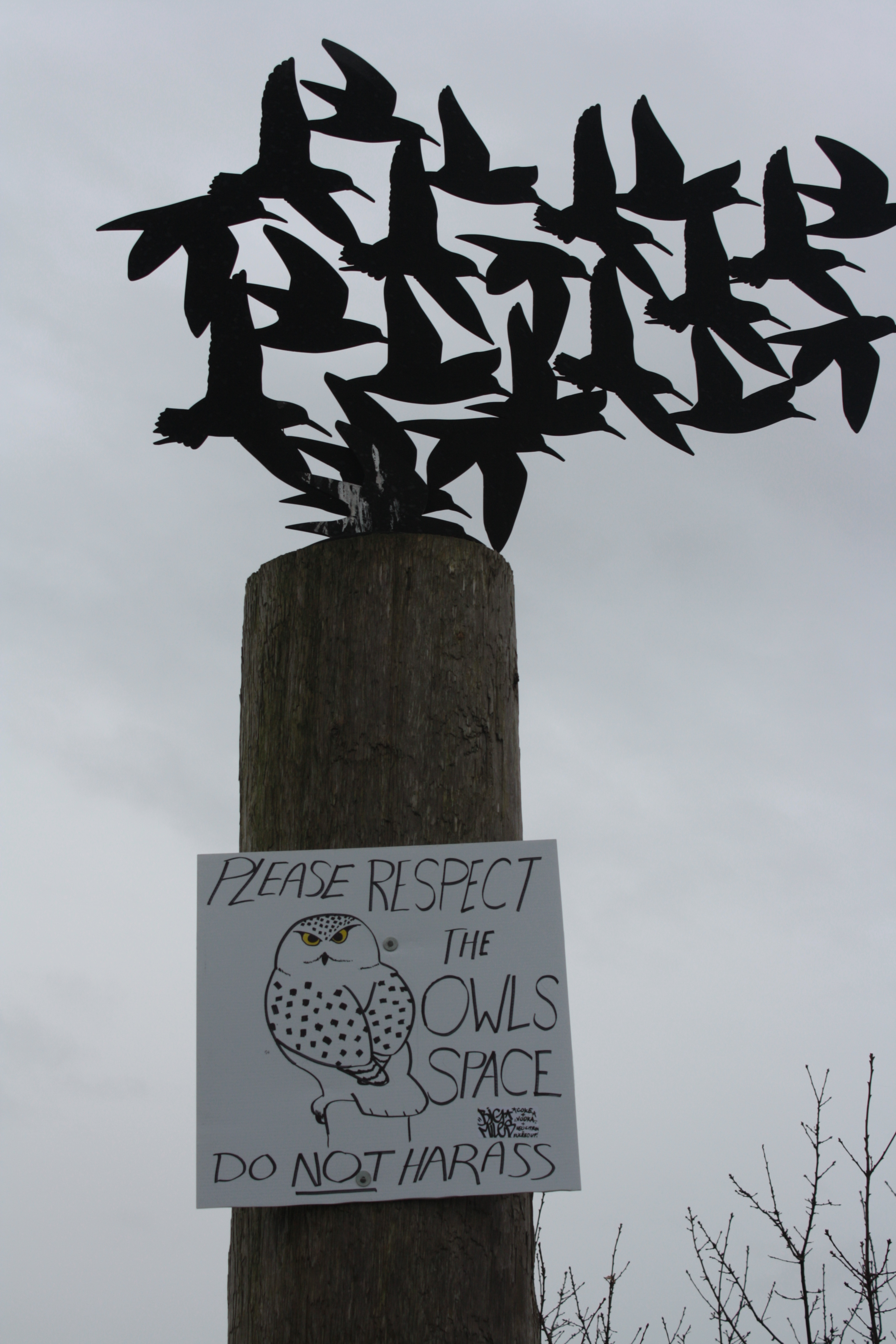 Crossing into Canada from Washington State now requires a passport, a fondness for maple syrup, and an outdoor adventurous streak. Following highway 99 take the Highway 17 South exit, Exit 28. Keep left and turn onto 56th, then 12th. Turn into Boundary Bay Regional park, if you have gone from Gunn Rd. to Jordan you have gone too far. Park next to the golf course and walk out along the water on your right. We took the path less travelled to the left and went along the stormy bay to a cacophony of birds singing their love song overhead. And truly, it was magical. Groups of Dunlins soaring together in a wave like formation rolling over to expose their black wings, and then disappearing as their grey bellies met with a cloudy sky. We saw countless, majestic eagles in various stages of life, scruffy teenagers and mature, white headed eagles seated in massive nests. But no owls. It is possible they were scared off due to the duck hunters blasting bullets into the sky a mere 100 yards from our peaceful stroll. Good thing I hadn’t worn my camouflage and instead waved my lime green wellies in a frantic “I come in peace” motion so as not to be mistaken for a Sunday afternoon meal.