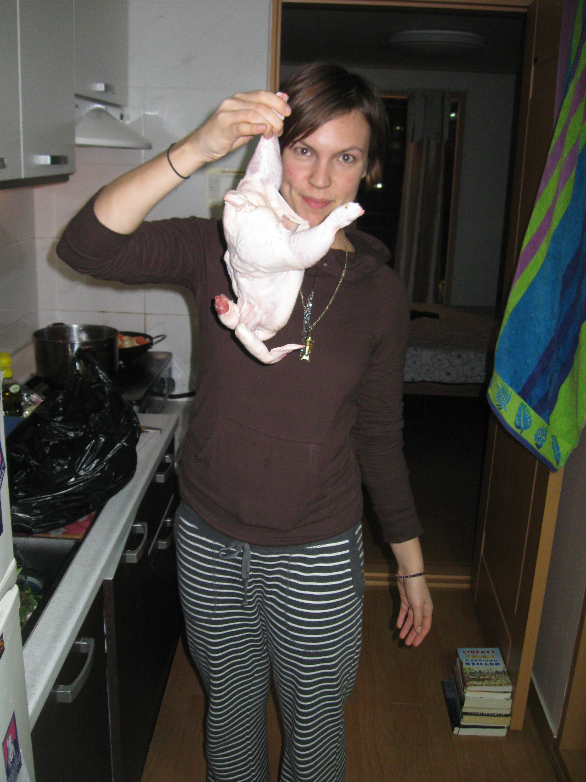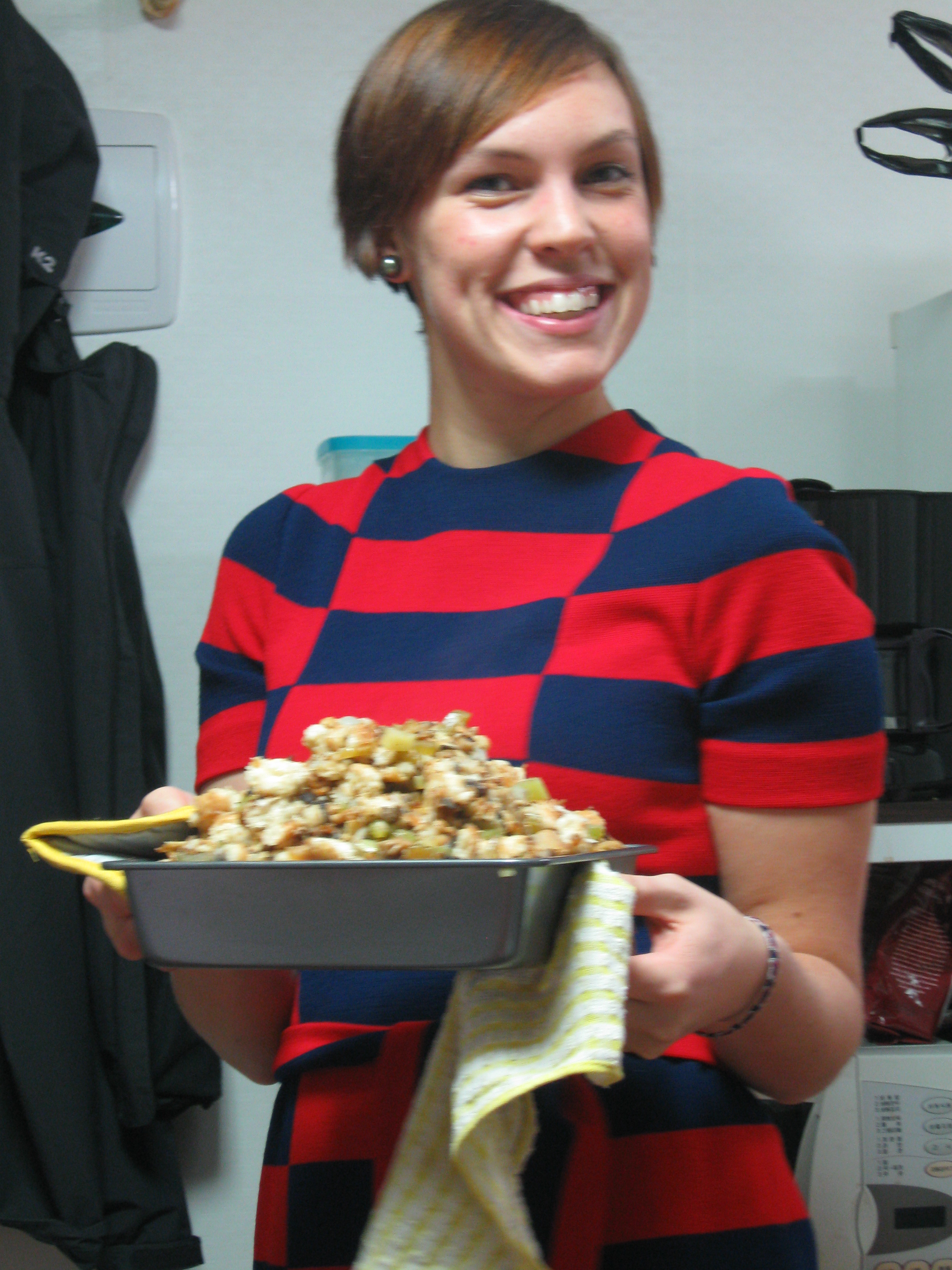 Matt found a rugby team to play on here in Korea and was part of a tournament 3 hours outside of Busan for the weekend. Our big Thanksgiving dinner at the local bar we frequent was not scheduled until Saturday and so, not wanting Matt to go a year without stuffing, I decided to tackle a Thanksgiving (Round 1) in our apartment on Friday night. I use the word “Tackle” because there is the obvious headache of finding ingredients to satisfy an American palate in Korea, although walking through the market to find flavors that you never knew existed has become one of my favorite pastimes. The real headache in cooking American food in Korea is the fact that Korean homes do not have ovens. No that is not a typo, rarely can you come across an oven here in Ulsan. So with our improvisation knobs turned way up, Matt and I invited a mix of Americans, English, Welsh and Australians to our humble apartment for a Thanksgiving feast. The biggest problem was the turkey, because lets just face it, the turkey farm is about as American as you can get, so we settled for game hen. Meat can be purchased fresh daily and VERY affordably at our local market, so this is where we were able to handpick the ingredients for our makeshift meal. After some helpful and encouraging advice from the one and only saltyseattle www.saltyseattle.com I was confident that stuffing could be made using a rice cooker, and a hen in a pot wasn’t that crazy of an idea.