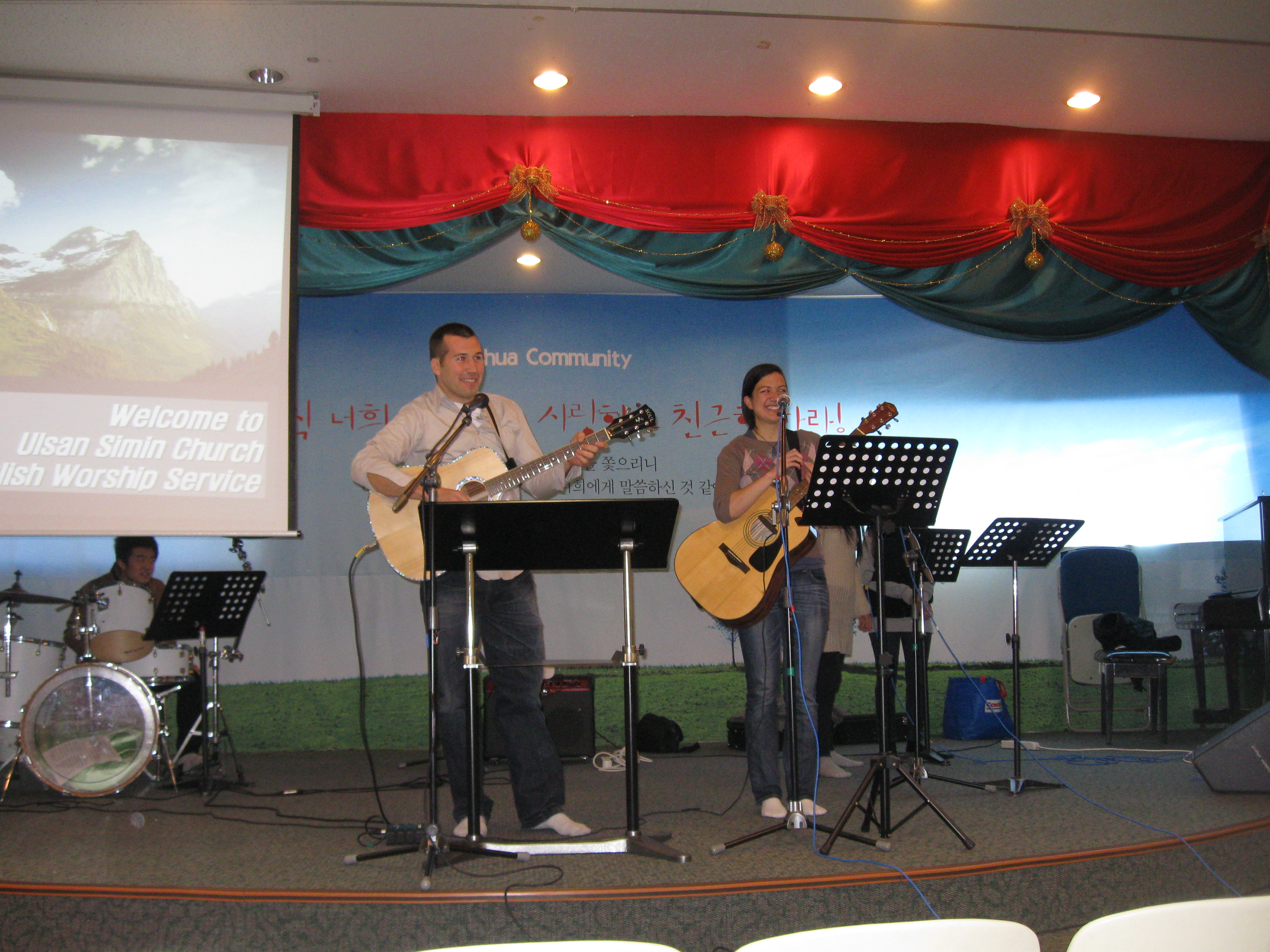 It’s exciting really to be this far removed from familiarity. Matt and I have both experienced cultures outside the United States but never this far East, and there is really a whole different set of rules here. One of which apparently includes borrowing someone else’s indoor slippers. So I will go shopping tonight for another pair and we will try again tomorrow to camouflage ourselves into the fabric of the Korean culture. Neither of us will ever be six inches shorter, be able to combine letters to make the perfect d/t sound with our tongue or be able to take down an eight year old with a black belt, but while out in the bustle of the holiday season this weekend, not once were either of us pointed at only to hear “Wae-guk” (foreigner) whispered from a Korean child. This can only mean that our actions have become naturally Korean enough for the time being.