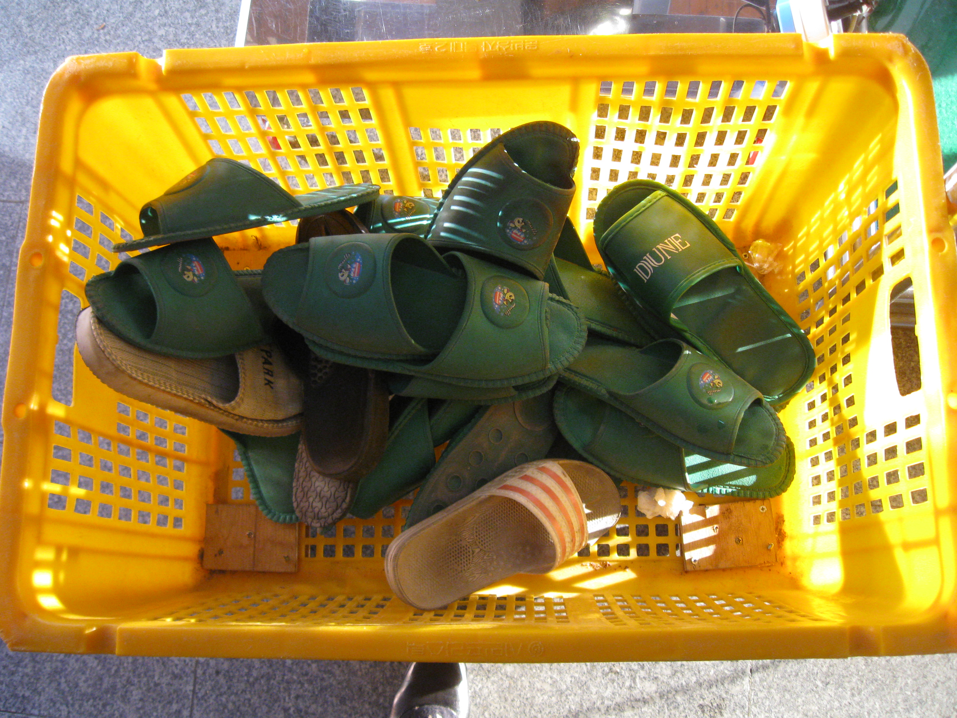 I grew up taking my shoes off inside the house. My parents appreciated this in order to save our wood floors and I always enjoyed feeling cozy in a pair of socks or dancing between the kitchen and back yard barefoot. As I grew older and visited other people’s homes it seemed very natural to take my shoes off both to assure the host that I would respect the cleanliness of their home during my stay and to show that I would be staying a while and not running out the door the second dinner was over. Taking my shoes off seems like a natural and appropriate gesture both in the United States and here in Korea. With that said, my in door slippers were either accidentally worn home by someone besides myself or stolen this week and this has spurred me to look at this custom of de-robing one’s feet a little differently.