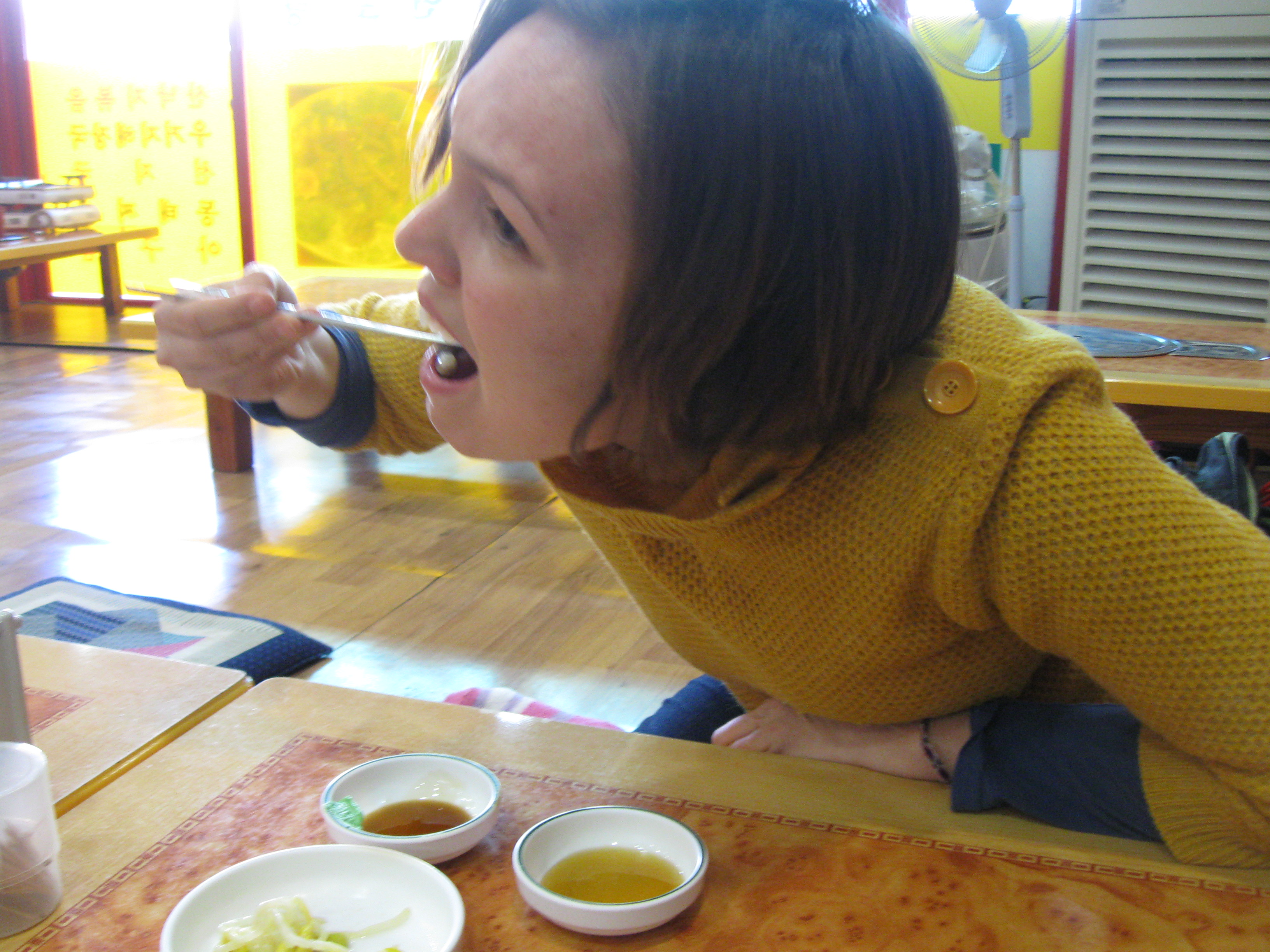 Matt and I are all about sampling cuisine from anywhere and everywhere and we’ve been pretty spoiled so far. I didn’t realize until years later that my time spent in Italy was both a blessing and a curse because it exposed me to Piedmont’s flawless spread of creamy sauces, fresh pasta and the world’s best wine. I never thought my pallet would be completely satisfied again…until now. I can’t really compare Korean cuisine to any other I have tried but Matt and I both agree that the Koreans have the “perfect bite” down. In any given bite I can taste ginseng, perilla leaf, bamboo salt, and rich Korean beef. Recently when having a discussion with some co-workers about what an asset Matt is to his school, he was told: “Matthew, your quality is your eating, you are a strong eater.” While I can find at least two or three qualities in Matt I would rank above his eating habits, I don’t blame him for his strong appetite here.